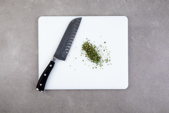 Die Rosmarinnadeln von den Stängeln zupfen und fein schneiden.
