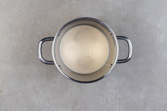 Die Béchamelsauce in einem kleinen Topf bei niedriger bis mittlerer Hitze erwärmen, dabei regelmäßig umrühren. Die Zucchini-Hackfleisch-Pfanne auf dem Reis anrichten und mit der Béchamelsauce beträufelt servieren, den Salat dazu reichen.