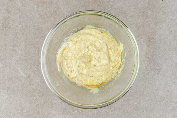 Die Basilikumcreme, 2EL Mayonnaise, ½TL Balsamicoessig und je 1 Prise Salz und Pfeffer zu einer Creme verführen.