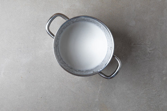 100ml Kokosmilch und 700ml Wasser mit 1 kräftigen Prise Salz in einem mittelgroßen Topf zum Kochen bringen. Den Reis in einem Sieb kalt abspülen, bis das Wasser klar bleibt. Sobald das Wasser kocht, den Reis hineingeben und abgedeckt bei niedrigster Hitze 10–12Min. kochen, bis das Wasser aufgesogen und der Reis gar ist. Noch ca. 5Min. ohne Hitzezufuhr ziehen lassen.