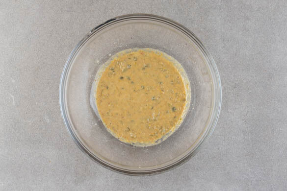 Das Tahini mit den Kapern, dem Knoblauch, der ½ der Hefeflocken, 1TL Zitronenschale, 2–3EL Zitronensaft, 1TL Senf und 1EL Pflanzenöl verrühren. 1–2EL Wasser unterrühren, bis das Dressing die gewünschte Konsistenz hat. Mit Salz und Pfeffer abschmecken.