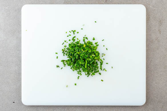 Den Schnittlauch in kleine Röllchen schneiden.