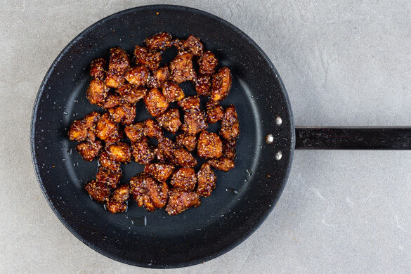 Wann oder wie das Hähnchen auf General Tso traf, werden wir an dieser Stelle nicht klären können, aber wir wissen, dass es sich bei diesem Gericht um einen Klassiker der chinesischen Küche in Nordamerika handelt. Warum? Darum: Aromatisch mit Ingwer angebratener Brokkoli und fluffiger Reis gehen mit kräftigem Hähnchenschenkelfleisch in süß-würziger Sauce ein unschlagbares Bündnis ein. Präsentiert die Stäbchen!