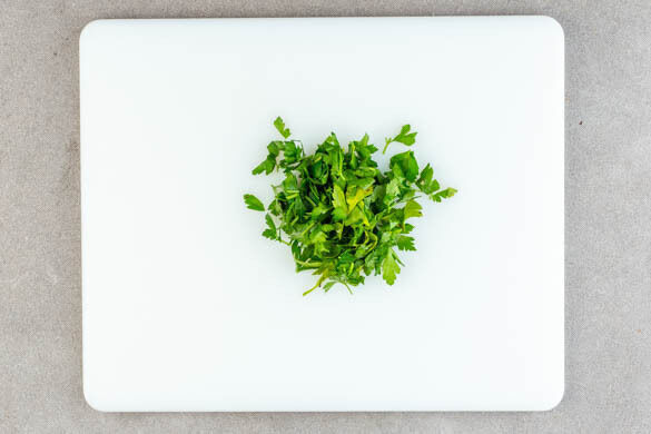 Während die Suppe köchelt, die Petersilie grob hacken.