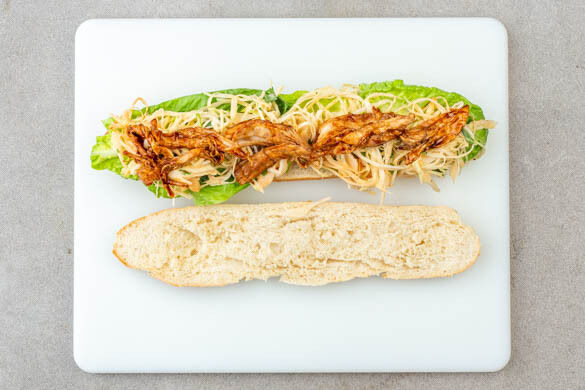 Vergiss labberige Brötchen und faden Geschmack: Mit diesen Sandwiches kannst du einfach nix falsch machen, denn sie zeigen, wie es richtig geht: Das knusprige Brötchen füllst du üppig mit saftig-zartem Bio-Hähnchenfleisch, knackig-würzigem Weißkohl und frischem Romanasalat. Ein Sandwich voll großartiger Aromen und Texturen – worauf wartest du noch?! Guten Appetit!