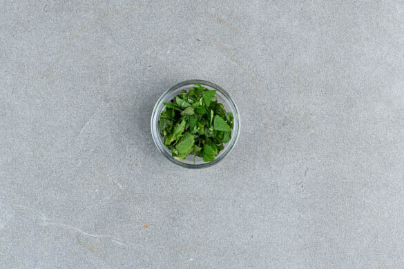 Inzwischen die Minzeblätter von den Stängeln zupfen und grob schneiden.
