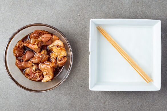 Yakiwas? Yakuza? Nein, keine Sorge, wir arbeiten zwar heute mit Spießen, aber definitiv für den guten Zweck. Yakitori ist in etwa die japanische Entsprechung des gemeinen Grillspießes – aber natürlich innerhalb der typischen, ortsüblichen Aromen- und Zutatenwelt: Das Gemüse und die Udon-Nudeln werden mit einem raffinierten Sojasaucen-Mix verfeinert, das Hähnchenschenkelfleisch für die Spieße mit Teriyakisauce. Mmh!