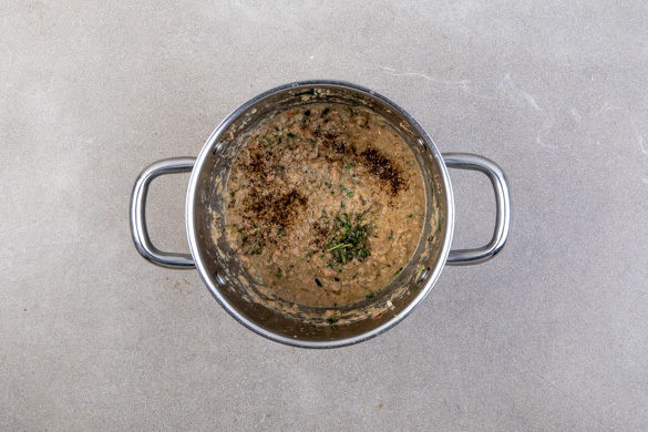 Die Petersilie samt Stängeln fein hacken. Die Rosmarinnadeln abzupfen und fein schneiden.