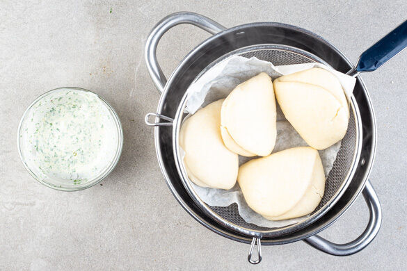 Die Korianderblätter von den Stängeln zupfen, fein schneiden und mit 1EL Essig und 1EL Mayonnaise zu einem Dressing verrühren. Tipp: Die Stängel einfrieren und das nächste Chili damit verfeinern. Die Hefebrötchen in den mit Backpapier ausgelegten Dampfbehälter geben und ca. 7Min. abgedeckt dämpfen.