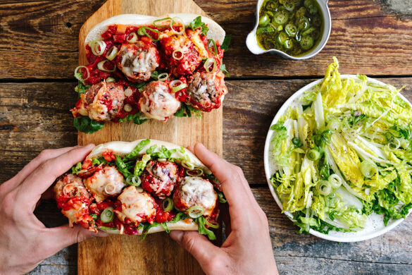 Im Land der unbegrenzten Möglichkeiten wurde das „Meatball Sub“ einst von italienischen Einwanderern erfunden und weiß uns heute auch hierzulande zu begeistern. Gefüllt wird das knusprige Brötchen mit saftigen Hackfleischbällchen in einer fruchtigen Tomatensauce mit geschmolzenem Käse. Zu Recht ein Klassiker!
