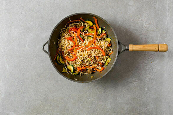 Bami und Nasi Goreng sind die wohl bekanntesten Gerichte der Küche Indonesiens. Nasi Goreng wird mit gebratenem Reis zubereitet, Bami Goreng mit gebratenen Vollkornnudeln. Unsere heutige Version des beliebten Nudelklassikers kann so schnell nichts toppen: Mit herzhaftem Rinderhack und knackigem Gemüse, abgerundet durch eine pikant-würzige Sauce mit Sambal Badjak, ist dein köstliches Mahl im Nullkommanix auf dem Tisch.