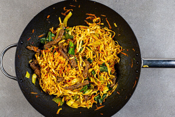 Hoisinsauce wird aus fermentierten Sojabohnen hergestellt und in der asiatischen Küche oft zum Würzen von Fleischgerichten verwendet. Hier verfeinert die süßlich-kräftige Sauce zusammen mit dem in Malaysia und Indonesien beliebten Sambal Badjak den schnell zubereiteten Rindfleisch-Wok mit knackigem Pak Choi. Limette und geröstetes Sesamöl bringen zusätzliches Aroma ins Spiel. Einfach lecker!