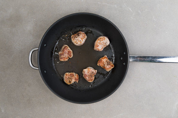 Das Fleisch trocken tupfen, ggf. von Sehnen befreien und in 10–12 Medaillons schneiden.