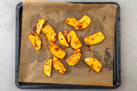 Das ursprüngliche Gericht stammt aus Buffalo, New York, und wird üblicherweise mit Geflügel zubereitet. Unsere vegetarische Version steht dem Original aber in nichts nach und ist ein echter Hingucker. Knollensellerie aus dem Ofen wird mit einer spritzig-pikanten Sauce kombiniert und auf einem knackigen Salat aus Gurke und Tomaten mit würzigem Dressing serviert. Hartkäse drauf, fertig. Jeder Bissen ist ein Genuss!
