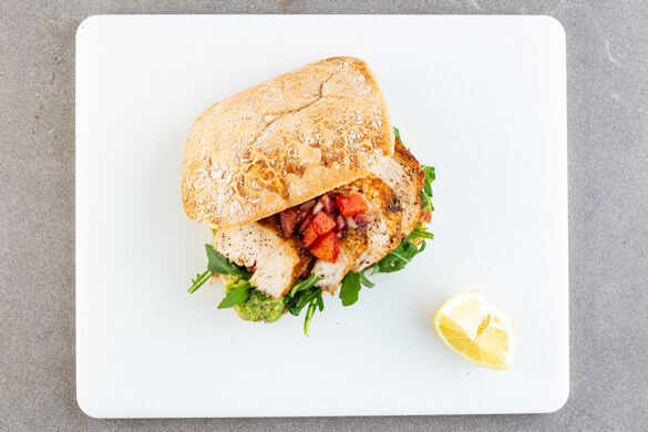 Dieses Sandwich ist prall gefüllt mit gebratenem Hähnchenfleisch, köstlich-cremiger Guacamole, würzigem Rucola und einer frischen Tomatensalsa. Die Baguettebrötchen sind richtig schön knusprig, weil sie vor dem Befüllen noch kurz im Ofen aufgebacken werden. Lasst es euch schmecken!