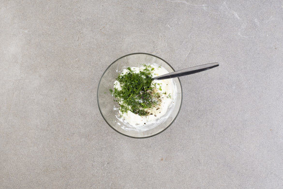 Nach ca. 10Min. Backzeit das Gemüse einmal wenden. Das Fleisch auf das Blech mit der Roten Bete geben und 15–20Min. mitgaren, bis es in der Mitte durch ist. Die Dillspitzen abzupfen und fein schneiden.