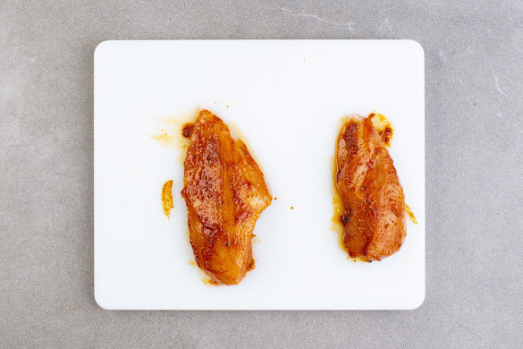 Das Fleisch mit etwas Küchenkrepp trocken tupfen. Den Senf mit 1–2EL Olivenöl, dem Paprikapulver sowie Salz und Pfeffer verrühren und das Fleisch damit einreiben.