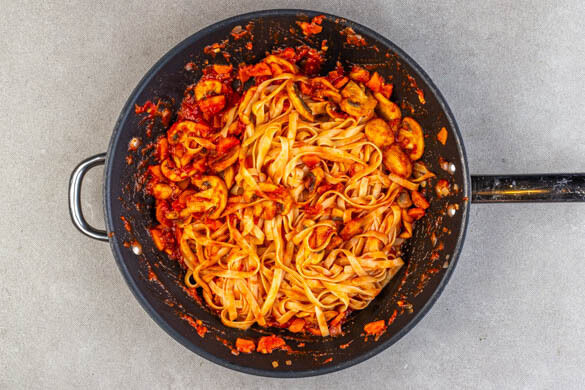 Dieses Pastagericht mit Champignons und Karotten in einem würzigen Ragout ist wie Balsam für die Seele und kitzelt auf pikante und angenehme Weise die Geschmacksknospen: Der aromatischen Tomatensauce wird nämlich mit koreanischer Chilipaste ordentlich eingeheizt! Duftende Gewürzmischung verleihen dem schmackhaften Kunstwerk zusätzlich Kawumm, und zitronig-frischer Ricotta macht sowieso alles besser!