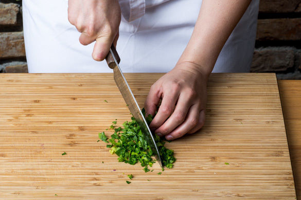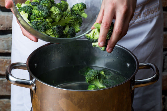 Den Brokkoli in das kochende Wasser geben und ca. 2Min. vorkochen. In ein Sieb abgießen und mit kaltem Wasser abschrecken. Tipp: Wer das Gemüse lieber etwas weicher mag, kocht den Brokkoli 1–2Min. länger.