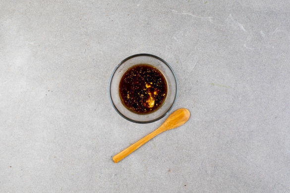 2EL Senf und 2TL Honig mit 3EL Olivenöl, 2EL Balsamicoessig und ggf. 1–2EL Wasser zu einem Dressing verrühren und mit Salz und Pfeffer abschmecken.