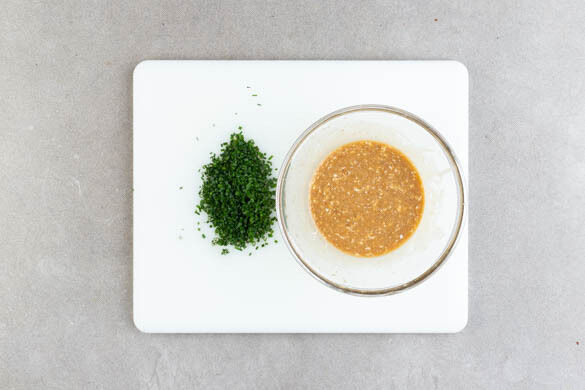 Das Kimchi in ein Sieb geben und die Flüssigkeit in einem kleinen Topf auffangen. Das Kimchi beiseitestellen. Den Kimchisud mit 2EL Wasser und 1EL Honig verrühren und bei starker Hitze 1–2Min. köcheln, bis die Glasur eindickt. Vom Herd nehmen und beiseitestellen.