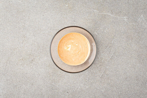 Den Backofen auf 200°C (180°C Umluft) vorheizen. 2EL Mayonnaise, 1EL Ketchup, 1EL Senf und 1EL Essig zu einem Dip verrühren, mit Salz und Pfeffer abschmecken.