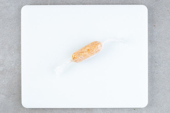 Den Backofen auf 220°C (200°C Umluft) vorheizen. 2EL weiche Butter mit einer Gabel cremig rühren. Dann nach und nach 1½TL BBQ-Sauce unterrühren. Wer mag, kann auch mehr BBQ-Sauce verwenden. Die BBQ-Butter auf Frischhaltefolie wickeln, dabei die Enden so zusammendrücken, dass eine ca. 2cm dicke Rolle entsteht. Bis zur Verwendung ins Gefrierfach legen.