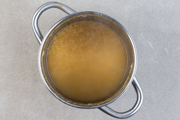 In einem mittelgroßen Topf 600ml Wasser mit dem Brühgewürz zum Kochen bringen. Den Bulgur in das kochende Wasser rühren und abgedeckt bei niedriger Hitze 8–10Min. sanft köcheln lassen, bis das Wasser aufgesaugt und der Bulgur gar ist. Noch ca. 5Min. ohne Hitzezufuhr ziehen lassen, dann in einem Sieb abkühlen lassen.