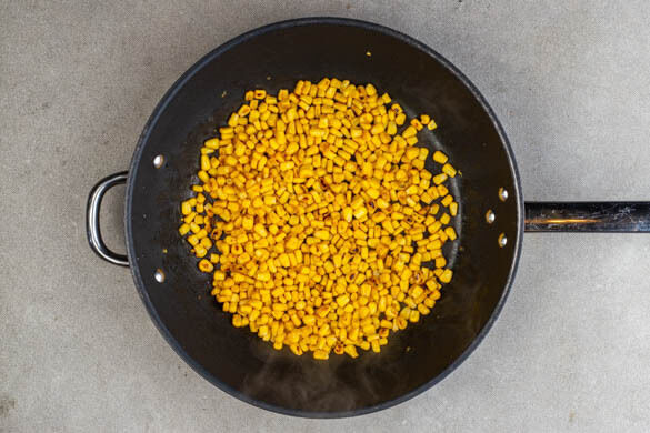 1EL Pflanzenöl in einer mittelgroßen Pfanne bei mittlerer bis starker Hitze erwärmen. Den Mais in ein Sieb abgießen und abtropfen lassen, dann mit 1 kräftigen Prise Salz in die Pfanne geben und ca. 2Min. ohne Rühren braten, bis der Mais Röstmarken bekommt. Dann schwenken oder umrühren und ca. 2Min. ohne Rühren weiterbraten.
