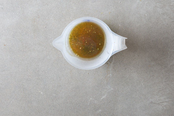 Die ½ des Brühgewürzes in 150ml heißem Wasser auflösen.
