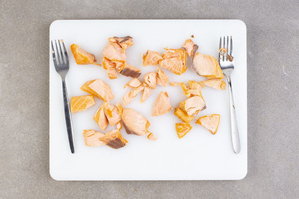 Die Haut entfernen und den Lachs mit einer Gabel grob zerteilen, evtl. vorhandene Gräten mit einer Pinzette entfernen. Den Lachs auf dem Quinoa-Gemüse-Salat anrichten. Mit den Rosinen, den restlichen Lauchzwiebeln, der restlichen Zitronenschale, dem Fenchelgrün und dem Joghurt garnieren und servieren.