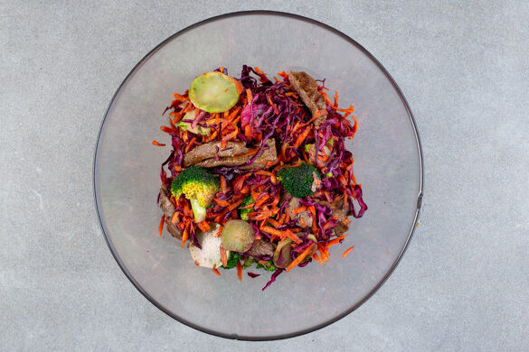 Wer mal wieder etwas knackig Frisches zwischen die Zähne bekommen möchte, wird an diesem Rezept viel Freude haben. Ruckizucki pürierst du aus duftender Limette, Koriander, Cashewnüssen und Sojasauce ein köstliches Dressing. Mit in Knofi gedünsteten Brokkoliröschen, tiefrotem Kohl und zart gebratenen Rindfleischstreifen wird dieser Salat auch optisch ein Hit!