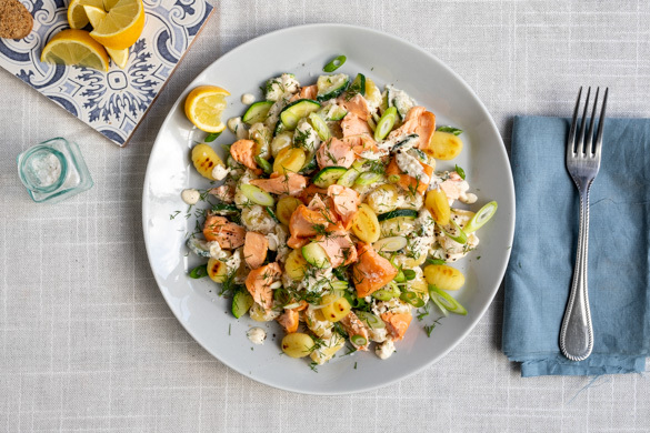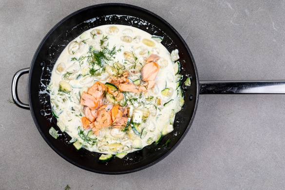 Lockere Gnocchi in einer cremigen Sauce aus Ricotta und Zucchini, alles fein abgeschmeckt mit Dill und frischer Zitrone, dazu saftige Stückchen von heiß geräuchertem Lachs – da muss man gar nicht mehr viel sagen: Das schmeckt und geht schnell!