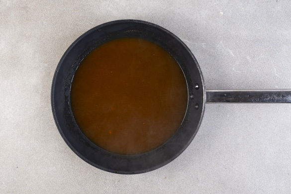 In einer mittelgroßen Pfanne 250ml Wasser mit der 1/2 des Brühepulvers bei mittlerer Hitze aufkochen, dann die Hoisinsauce unterrühren.