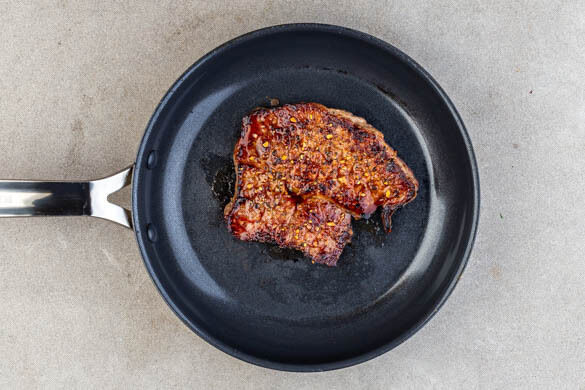 Das Fleisch in einer Grillpfanne oder normalen Pfanne bei starker Hitze auf jeder Seite 2–3Min. braten, abhängig davon, ob es medium oder eher durchgebraten sein soll. Aus der Pfanne nehmen und vor dem Schneiden einige Minuten auf einem Teller abgedeckt ruhen lassen. Zum Servieren in Tranchen schneiden und mit dem Gemüse und dem Chimichurri anrichten und servieren.