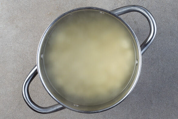 Wenn das Gemüse ca. 10Min. gebacken hat, in einem mittelgroßen Topf ausreichend gesalzenes Wasser für die Gnocchi zum Kochen bringen. Die Gnocchi in das kochende Wasser geben und einmal aufkochen lassen, dann bei niedriger Hitze ca. 4Min. garen, bis die Gnocchi an der Oberfläche schwimmen.