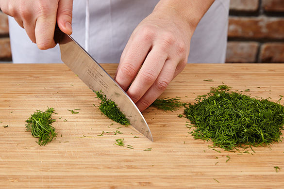 Den Dill mit den Stielen fein hacken. Die Schale der Zitrone abreiben und den Saft auspressen.