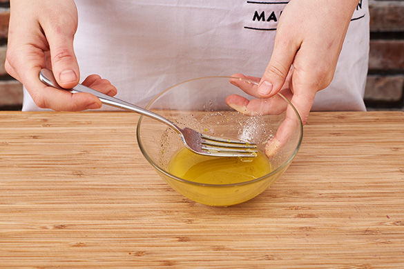 Den Schnittlauch möglichst fein schneiden, dann ca. 3/4 des Schnittlauchs mit dem Topfen und 2–3EL Wasser zu einem cremigen Dip verrühren. Mit Salz und Pfeffer abschmecken.