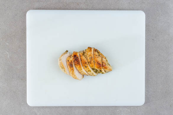 Das Fleisch aus der Pfanne nehmen und leicht schräg in Tranchen schneiden.
