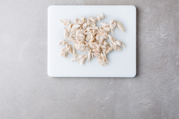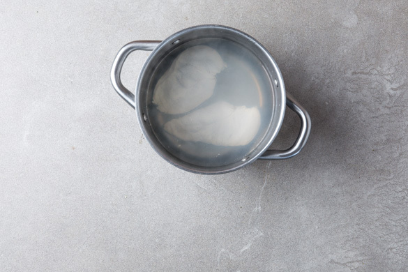 Den Backofen auf 220ºC (200°C Umluft) vorheizen. Das Fleisch trocken tupfen, jeweils horizontal halbieren und in einem mittelgroßen Topf mit kaltem Wasser bedecken. Das Wasser zum Kochen bringen und das Fleisch bei mittlerer Hitze in 15–20Min. gar kochen. In ein Sieb abgießen und abtropfen lassen.