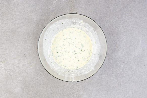 Die Zwiebeln mit dem Eierguss verrühren und gleichmäßig z. B. mit einer Gabel auf dem Teig verteilen.