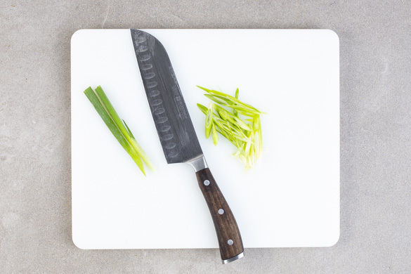 Die Lauchzwiebel schräg in feine Ringe schneiden. Die Suppe mit Salz, Pfeffer und dem restlichen Paprikapulver abschmecken und mit den Lauchzwiebeln garniert servieren.