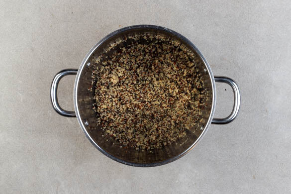 Die Tomate fein würfeln und mit der fertig gekochten Quinoa vermengen.