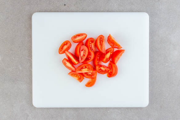 Die Tomaten in jeweils 6–8 Spalten schneiden.