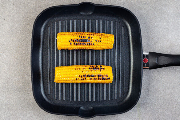 Das Päckchen auf dem Grill bei mittlerer bis starker Hitze 6–8Min. erwärmen, dabei gelegentlich wenden. Alternativ die Füllung mit 2EL Olivenöl in der Pfanne braten und anschließend würzen. Den Mais aus dem Topf nehmen, mit 1EL Olivenöl beträufeln und auf dem Grill oder in einer Grillpfanne bei mittlerer bis starker Hitze 6–8Min. garen, bis Röstspuren zu sehen sind. Regelmäßig wenden.