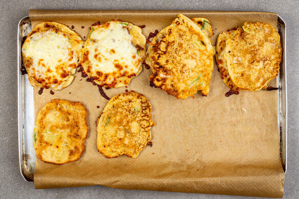 Pancakes gehen nur zum Frühstück oder als Dessert? Na, das wollen wir doch mal sehen! Die heutige Variante ist nämlich nicht nur herrlich herzhaft und super sättigend, sondern auch noch köstlich, kreativ und koreanisch inspiriert. Im fluffigen Teig verstecken sich würziges Kimchi, Frühlingszwiebeln und Ingwer. Kurz vorm Servieren kommen die dicken Dinger dann noch in den Ofen und werden mit Käse überbacken. Li-La-Lecker!