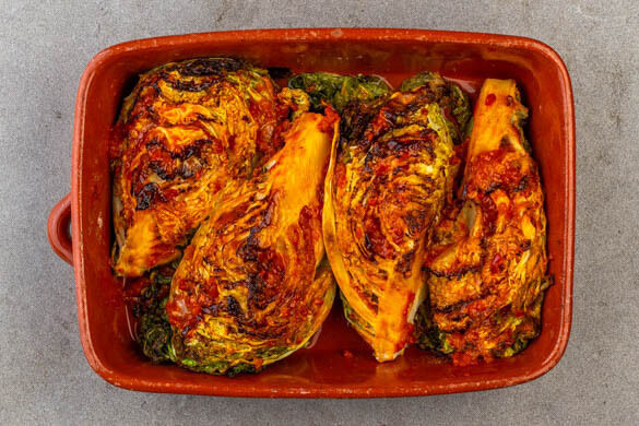 Wirsingsteak mit Orange und Harissa