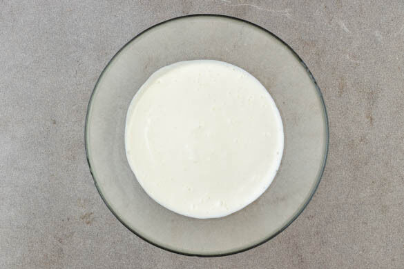 Die Füllung gleichmäßig auf dem Kuchenboden verteilen und glatt streichen, dann mind. 8Std. im Kühlschrank ruhen lassen. Der Cheesecake ist fertig, wenn die Füllung in der Mitte fest ist.