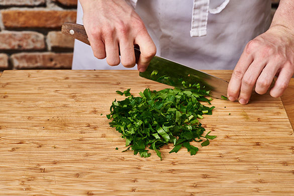 Währenddessen die Petersilie samt Stängeln grob hacken. Den Eintopf nach Geschmack mit der restlichen Gewürzmischung sowie Salz und Pfeffer abschmecken und mit der Petersilie garniert servieren.
