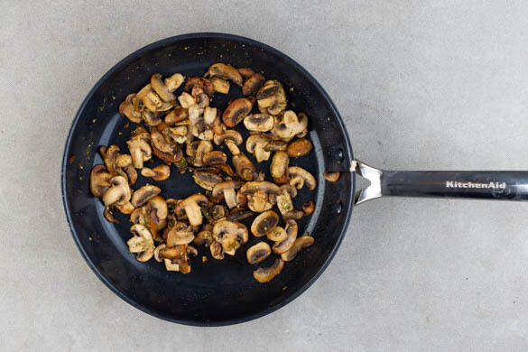 Die Pilze ggf. säubern und in dünne Scheiben schneiden. In einer großen Pfanne mit 1EL Butter und 1 Prise Salz bei mittlerer bis starker Hitze ca. 5Min. braten. Die Gewürzmischung unterrühren und ca. 1Min. weiterbraten. Die Pilze aus der Pfanne nehmen und in einem Sieb überschüssige Flüssigkeit abtropfen lassen. Die Pfanne auswischen.